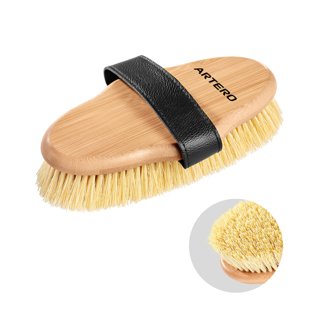 Asigură o prindere stabilă, cu mâna între corpul din bambus și cureaua periei.
