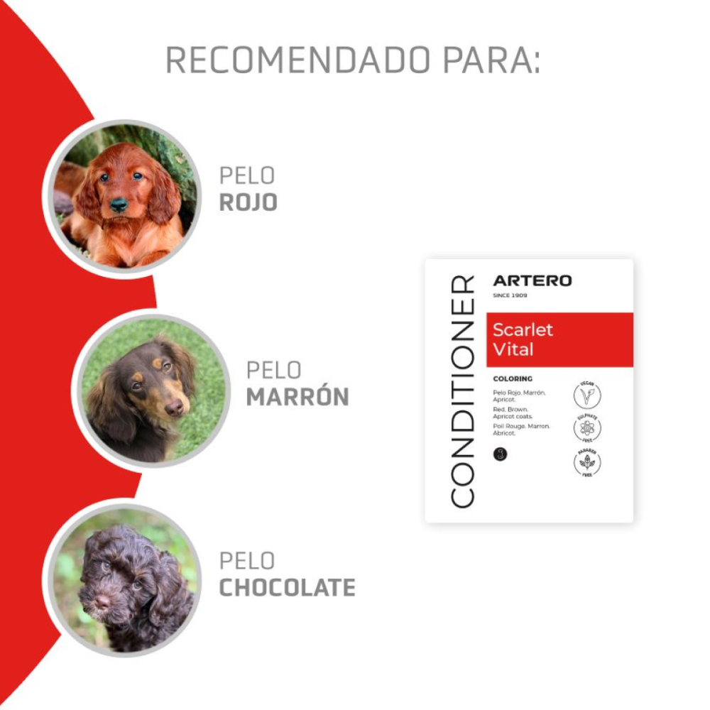 Produsul este potrivit pentru toate tipurile de blană, inclusiv sensibile sau uscate, și poate fi folosit atât în salon, cât și acasă. Datorită compoziției echilibrate, Artero Scarlet Vital 100 oferă blănii un aspect revitalizat, mai moale la atingere și mai ușor de periat după baie.