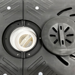 Ușă centrală detașabilă din plastic pentru acces facil pentru câinii mai mari. Include o bază de plastic în cadă pentru scurgerea rapidă a apei.
