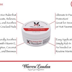 Pentru protejarea pernitelor: utilizati ceara pe tot parcursul anului pentru a apara pernitele catelului dumneavoastra, impotriva tuturor conditiilor meteorologice extreme (nisip, trotuar fierbinte, gheata si sare). Perfect inainte de orice tip de activitate in aer liber.