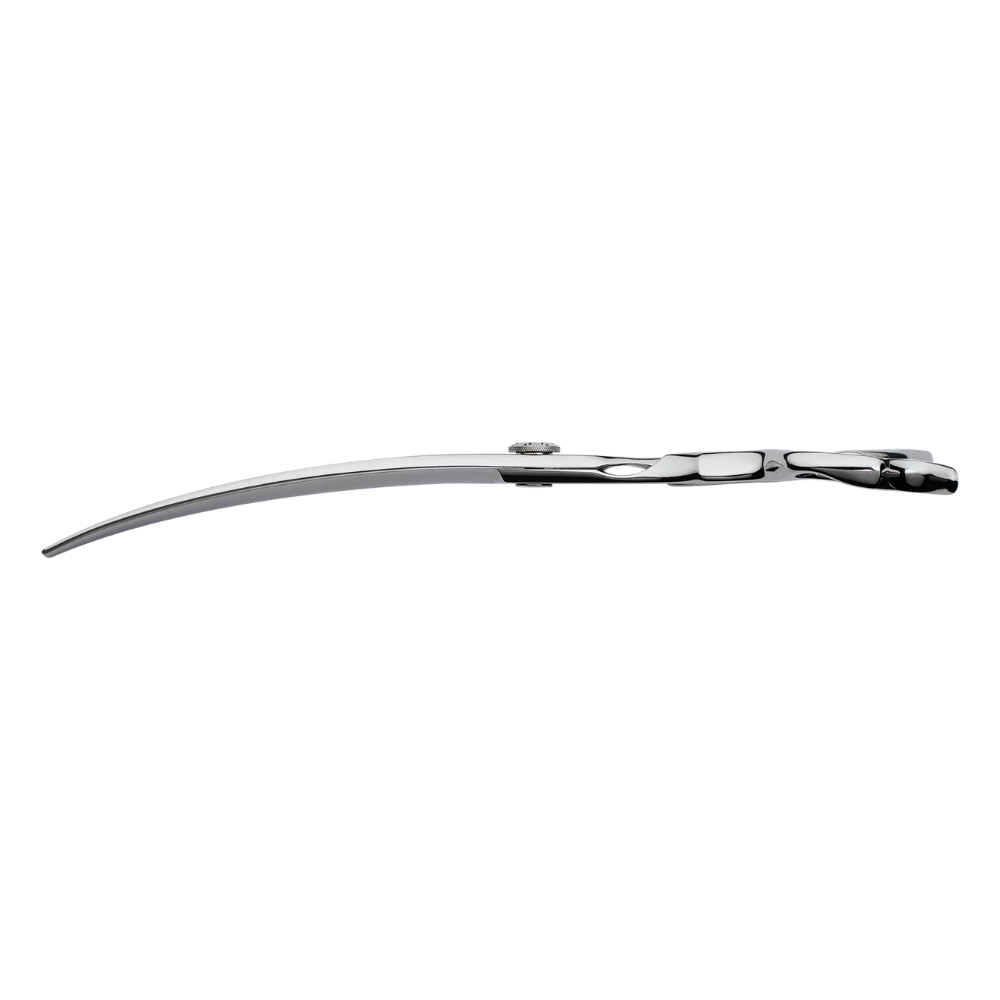 Această foarfecă profesională curbată pentru grooming este concepută pentru precizie maximă și control în fiecare detaliu al tunsorii. Lama convexă îngustă oferă un cutting ratio de 100%, ceea ce înseamnă o tăiere curată și uniformă, fără agățări sau smulgere a firului de păr.
