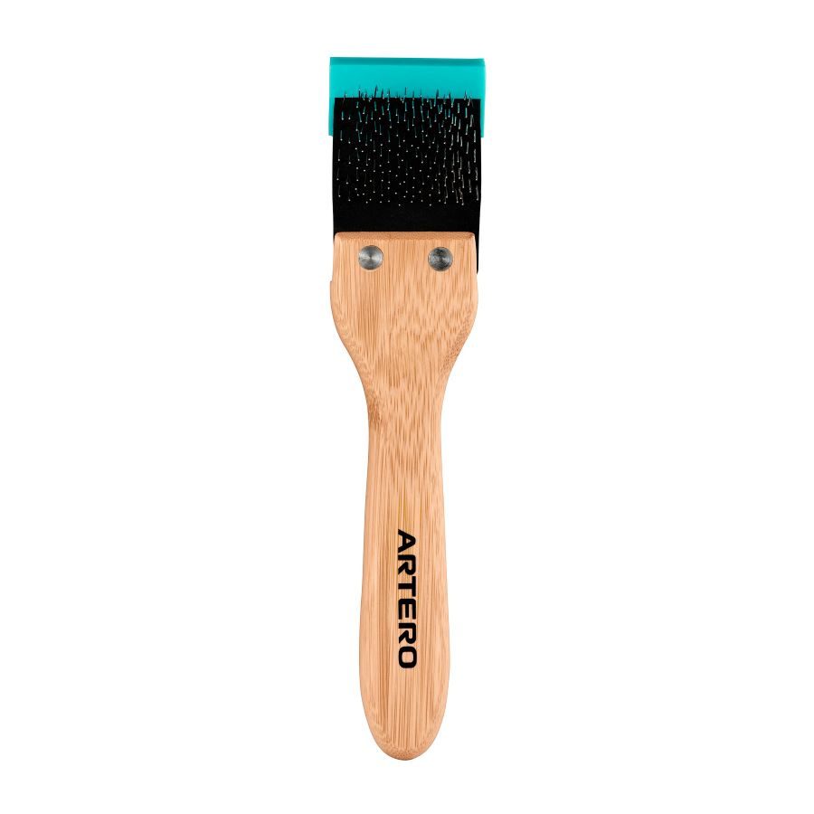 Această perie permite profesionistului să trateze corect blana, prevenind formarea nodurilor din cauza murdăriei acumulate. Acest produs este garantat de Artero. Ca atare, este un instrument de calitate superioară. Această perie dublă pentru câini permite diferite tratamente în funcție de nevoile animalului de companie, pentru descurcarea nodurilor încăpățânate și deschiderea blănii are un cap flexibil care se mișcă înainte și înapoi în funcție de presiunea aplicată de profesionist. Are două tipuri de dinți. Pe prima parte, peria are dinți protejați care permit o periere blândă și temeinică, îngrijind astfel optim pielea animalului de companie. Pe a doua parte, are dinți standard ascuțiți pentru a întinde blana și a descurca nodurile încăpățânate.