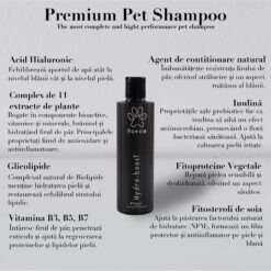 Fitosteroli de soia – Ajuta la pastrarea factorului natural de hidratare (NFM), formeaza un film protector si antiinflamator pe piele si blana.